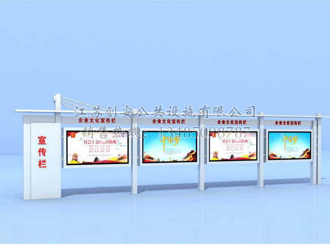 宣傳欄廠家-江蘇創(chuàng)安公共設(shè)施有限公司是一家國(guó)內(nèi)知名的專業(yè)從事宣傳欄,公交候車亭,精神堡壘,法治宣傳欄,消防宣傳欄,部隊(duì)宣傳欄,校園文化宣傳欄整體規(guī)劃、設(shè)計(jì)、生產(chǎn)制作、安裝、售后服務(wù)及產(chǎn)品研發(fā)于一體的宣傳欄制造有限公司。